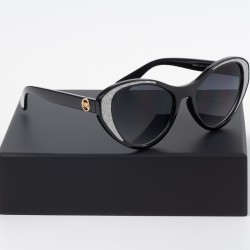 Ο glossy μαύρος σκελετός συνδυάζεται με ασημί διακοσμητική λεπτομέρεια στο μπροστινό μέρος, δημιουργώντας ένα ιδιαίτερο και μοντέρνο αποτέλεσμα που τραβάει τα βλέμματα. Το oversized σχήμα χαρίζει δυναμική εμφάνιση και καλύπτει ιδανικά το πρόσωπο.