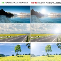 Τα γυαλια ηλιου με πολωτικουσ φακουσ με UV400 προστασία προσφέρουν αξιόπιστη προστασία από την ηλιακή ακτινοβολία και συμβάλλουν στη μείωση της κόπωσης των ματιών σε συνθήκες έντονου φωτισμού.