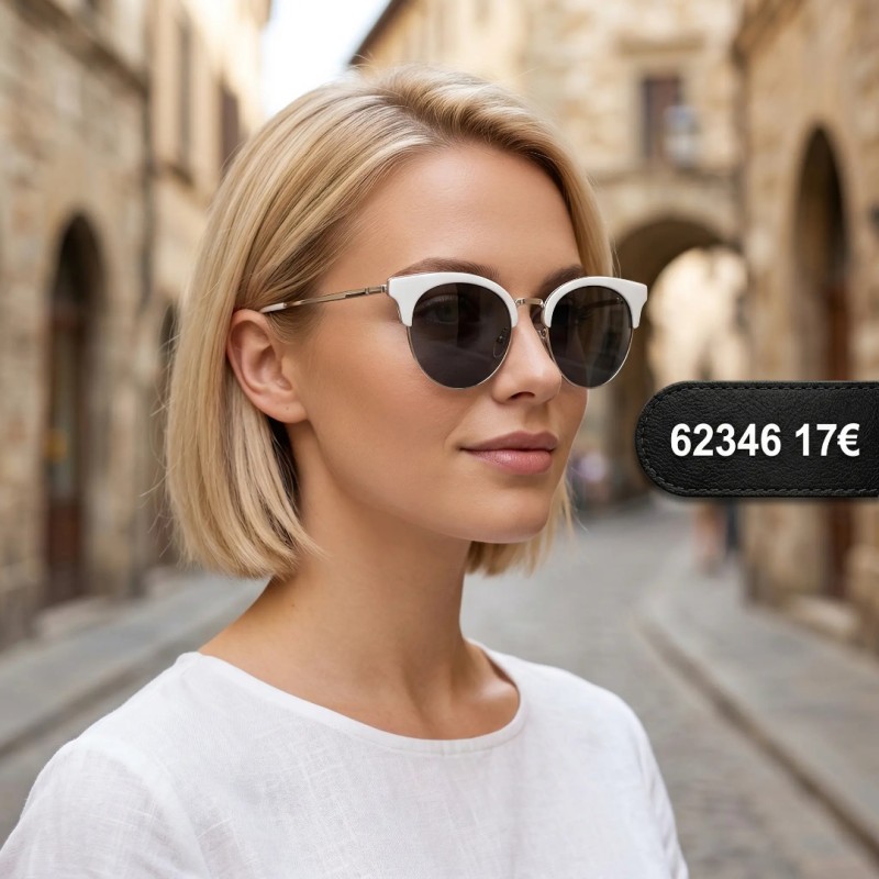 Ανανεώστε το στυλ σας με αυτά τα κομψά γυναικεία γυαλιά ηλίου σε μοντέρνο cat eye σχεδιασμό. Ο λευκός σκελετός σε συνδυασμό με τις μεταλλικές λεπτομέρειες δημιουργεί ένα ιδιαίτερο και μοντέρνο αποτέλεσμα που ταιριάζει ιδανικά με καλοκαιρινές εμφανίσεις.