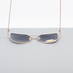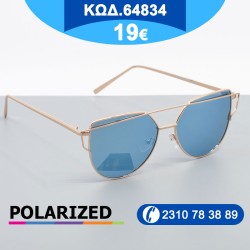 Γυναικεία γυαλιά ηλίου με λεπτό μεταλλικό σκελετό σε χρυσό τόνο και εντυπωσιακούς μπλε φακούς. Οι polarized φακοί μειώνουν τις αντανακλάσεις και προσφέρουν πιο ξεκούραστη όραση στην οδήγηση και στον ήλιο.
