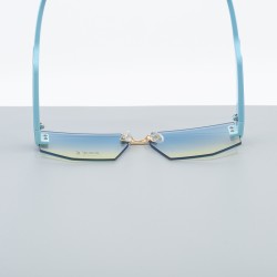 Ανακαλύψτε την απόλυτη ισορροπία ανάμεσα στο φουτουριστικό στυλ και την κομψότητα με τα γυαλιά ηλίου No 65015. Ο rimless σχεδιασμός με τους πολυγωνικούς φακούς σε γαλάζιο ντεγκραντέ προσφέρει μια κρυστάλλινη αίσθηση, ενώ οι ελαφριές κίτρινες ανταύγειες στο κάτω μέρος των φακών δημιουργούν μια μοναδική χρωματική αντίθεση που φωτίζει το πρόσωπο.