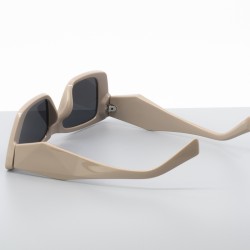 Κομψά γυναικεία γυαλιά ηλίου με μπεζ σκελετό και σκούρους φακούς, ιδανικά για minimal και σύγχρονες εμφανίσεις. Ο διακριτικός σχεδιασμός τους τα καθιστά εύκολα συνδυάσιμα με κάθε outfit, από πρωινές βόλτες μέχρι απογευματινές εξόδους στην πόλη.