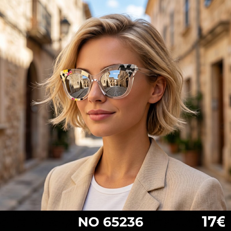 Ξεχώρισε με αυτά τα γυναικεία γυαλιά ηλίου τύπου cat eye με καθρέφτες και μοναδικό πολύχρωμο σχέδιο στον σκελετό.