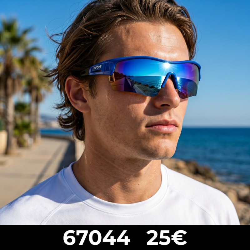 Απόλυτο καλοκαιρινό στυλ και υψηλή απόδοση με αυτά τα αθλητικά γυαλιά ηλίου τύπου μάσκας σε μπλε χρώμα με καθρέφτες φακούς.