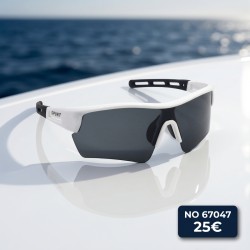 Αθλητικά γυαλιά ηλίου μάσκας με λευκό σκελετό και σκούρο μαύρο φακό για απόλυτη προστασία και καθαρή όραση.
