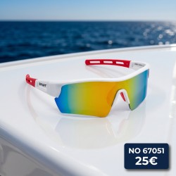 Αθλητικά γυαλιά ηλίου μάσκας με λευκό σκελετό και κόκκινες λεπτομέρειες που δημιουργούν έντονο και δυναμικό sport look.