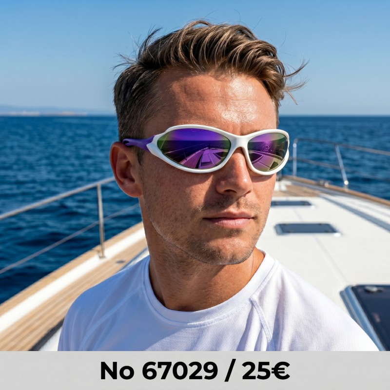 Ξεχώρισε με αυτά τα εντυπωσιακά ανδρικά Γυναικεία γυαλιά ηλίου σε λευκό sport σχεδιασμό με μωβ καθρέφτη φακούς. Ο μοντέρνος συνδυασμός χρωμάτων χαρίζει έντονο καλοκαιρινό χαρακτήρα και δυναμικό στυλ που τραβάει τα βλέμματα.