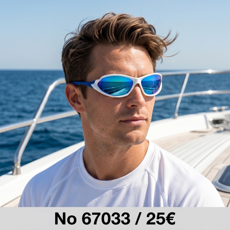 Απόκτησε μοντέρνο και δυναμικό στυλ με αυτά τα ανδρικά γυαλιά ηλίου σε λευκό sport σχεδιασμό με μπλε καθρέφτη φακούς. Ο φωτεινός συνδυασμός χρωμάτων χαρίζει καλοκαιρινή διάθεση και εντυπωσιακή εμφάνιση σε κάθε σου έξοδο.