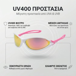 Τα sport γυναικεία γυαλιά ηλίου cat eye λευκά με ροζ & καθρέφτη φακούς uv400 με UV400 προστασία προσφέρουν αξιόπιστη προστασία από την ηλιακή ακτινοβολία και συμβάλλουν στη μείωση της κόπωσης των ματιών σε συνθήκες έντονου φωτισμού.